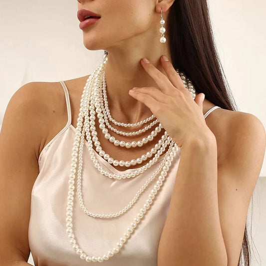 Vintage Long Multi Layer Pearl Necklace Delicate