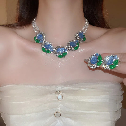 Elegant Rhinestone Leaf Pearl Jewelry Set
