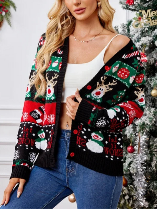 Christmas Snowflake Knit Sweater Round Neck Long Sleeve