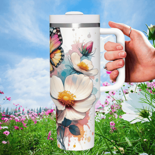 White Gardenia Flowers Butterfly 40 oz Tumbler