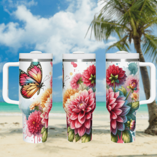 Dahlia Flowers Butterfly 40 oz Tumbler