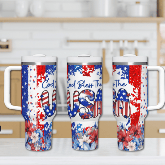 Football Player in Front Of American Flag | 40 oz Tumbler