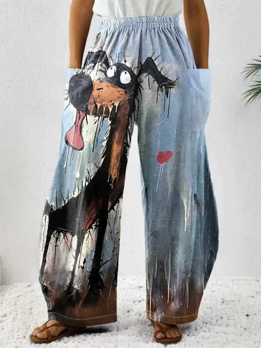 Women's Loose Bloomers Cartoon Dog Animal Print Polyester Pocket