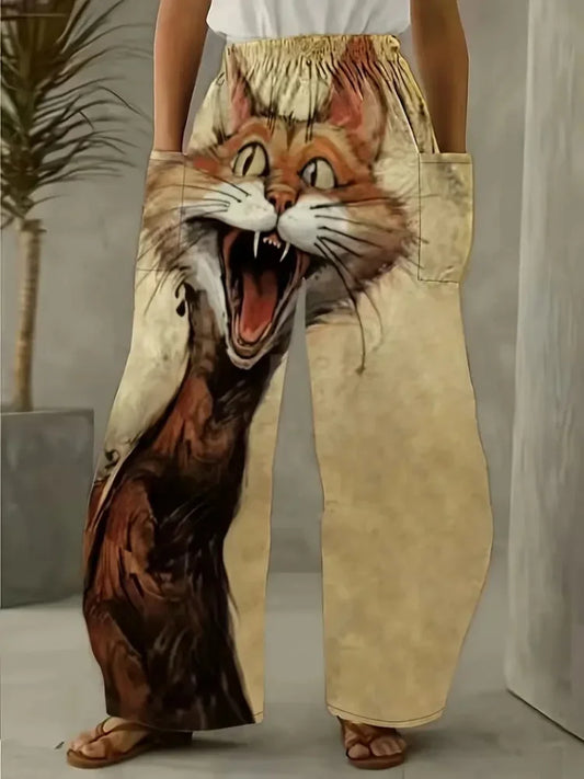 Women's Loose Bloomers Cartoon Cat Print Polyester Pants