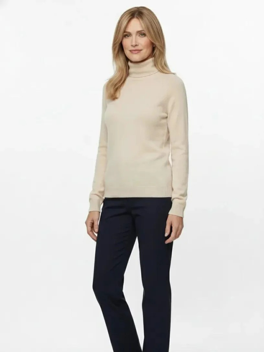Beige Merino Wool Long Sleeve Turtleneck Sweater