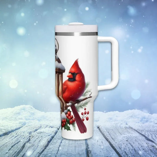 Red Cardinal with White Flowers | 40 oz Tumbler