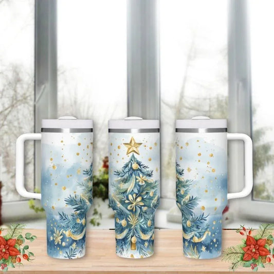 Blue & Gold Christmas Tree | 40 oz Tumbler