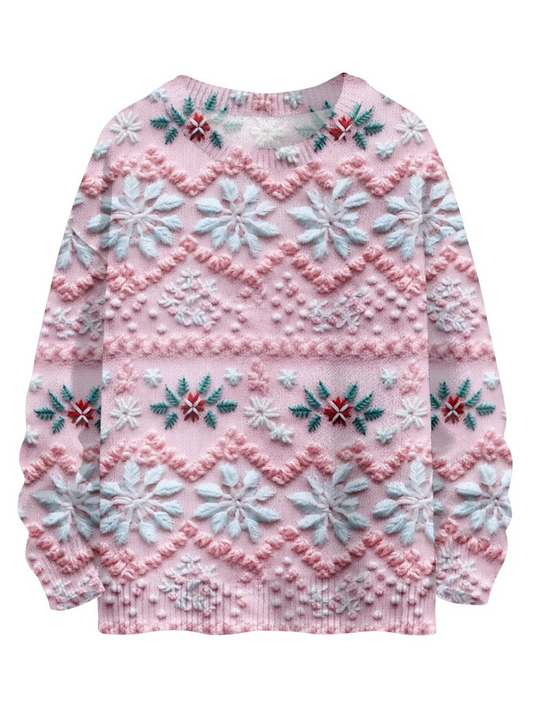 Christmas 3D Light Pink Mosaic Print Sweatshirt