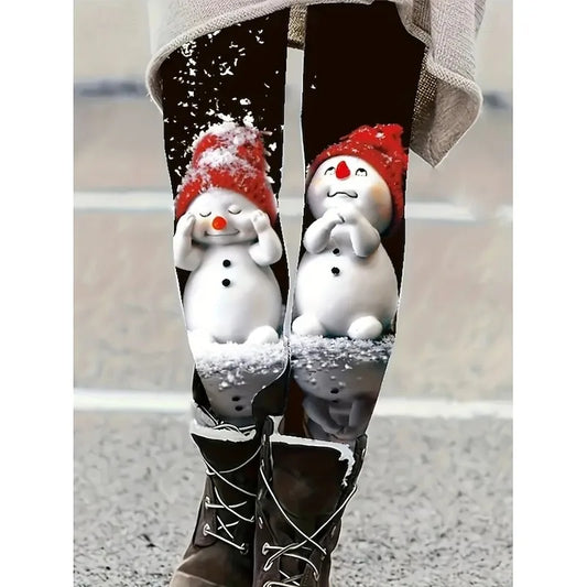 Cartoon Christmas Snowman 3D Printed Leggings