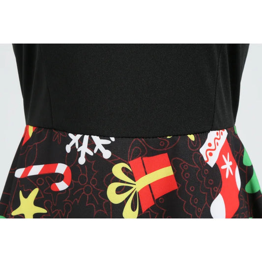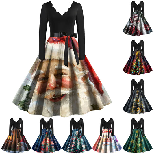 Women's Christmas Printed Spliced Polyester Dress Regular