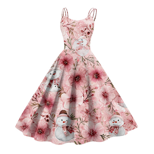 Women Christmas Print Spaghetti Strap Polyester Dress