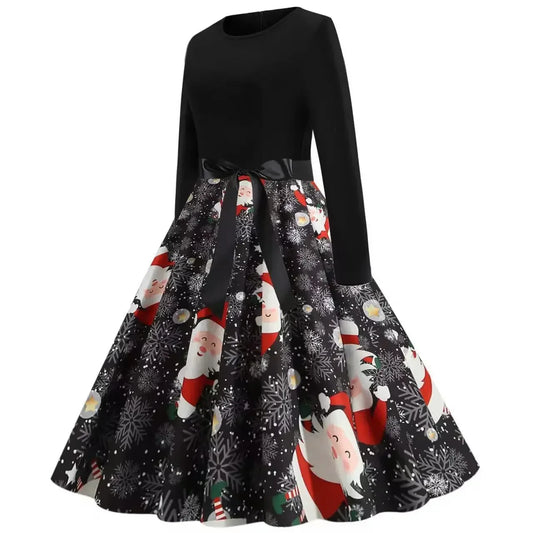 Women's Christmas Printed Spliced Polyester Dress Regular