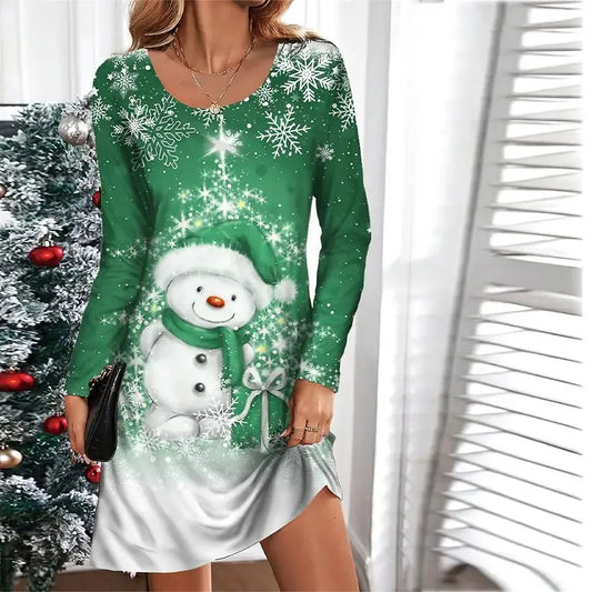 Women's Christmas Casual Snowflake And Christmas Tree Print Dress