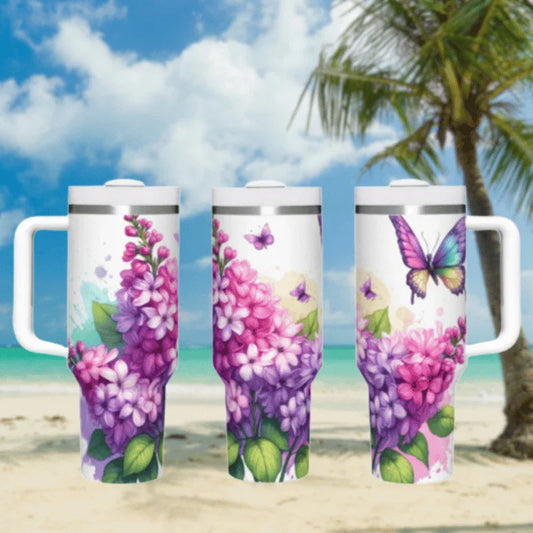 Purple Lilac Flowers & Butterfly 40 oz Tumbler