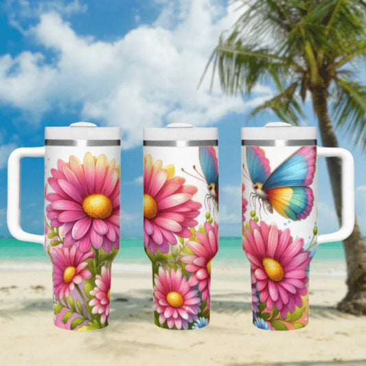 Daisy Flowers & Butterfly 40 oz Tumbler