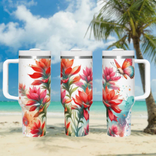 Red Lily Flowers & Butterfly 40 oz Tumbler