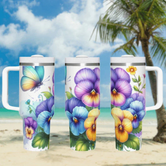 Pansy Flowers & Butterfly 40 oz Tumbler