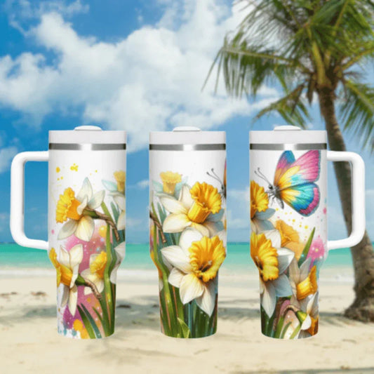Yellow Daffodil Flowers & Butterfly 40 oz Tumbler