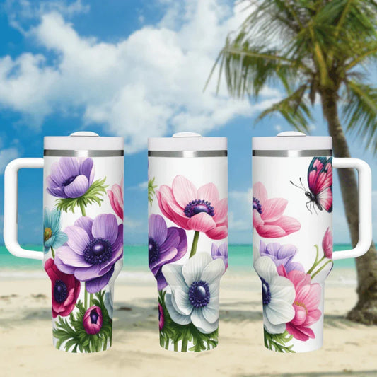 Colorful Anemones Flowers & Butterfly 40 oz Tumbler