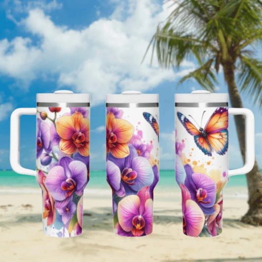 Orchid Flowers & Butterfly 40 oz Tumbler