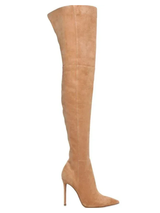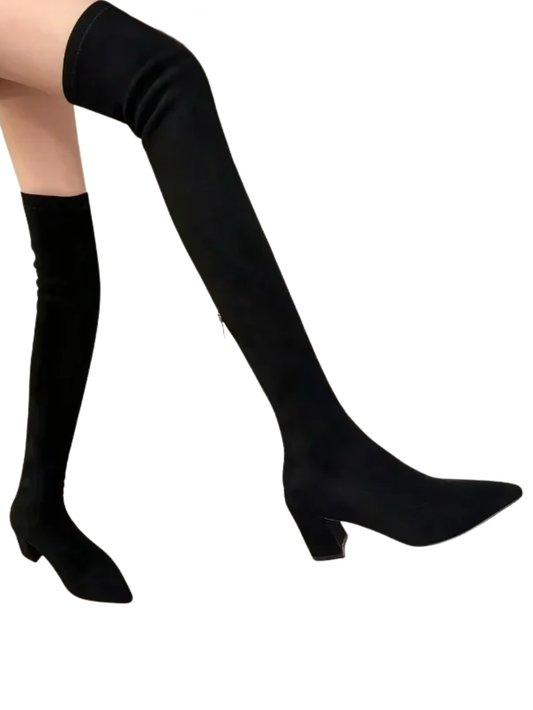 Over Knee Boots Pointed Toe Square Heel Back Zip Suede