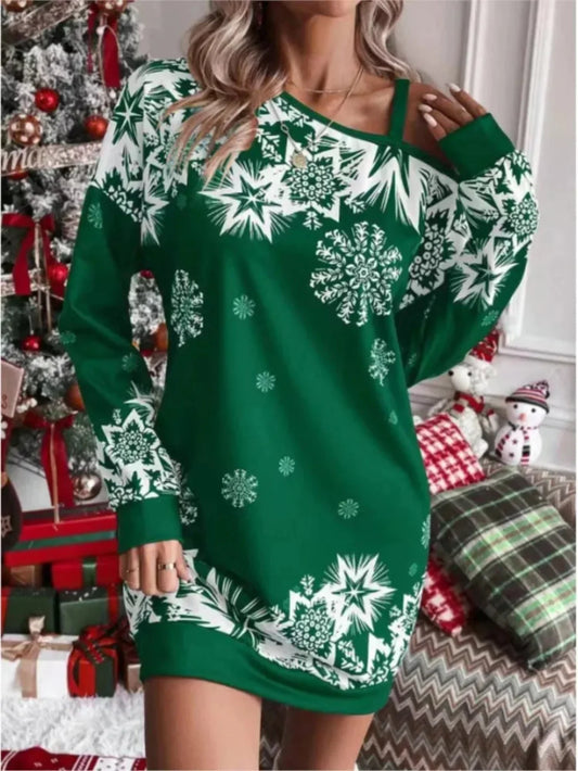 Women Christmas Print Spaghetti Strap Polyester Dress
