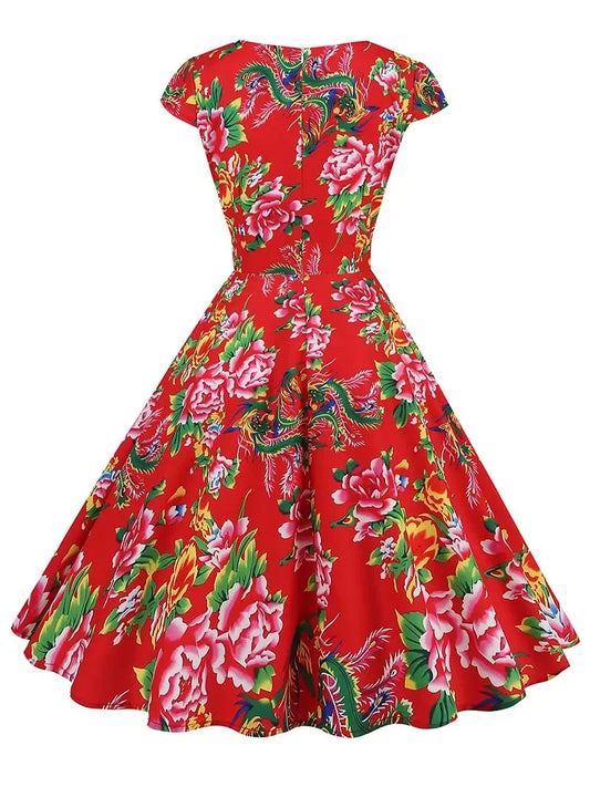 50s Floral Print Vintage Dress - Pinup Tea Party Ready