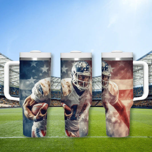 Football Player in Front Of American Flag | 40 oz Tumbler
