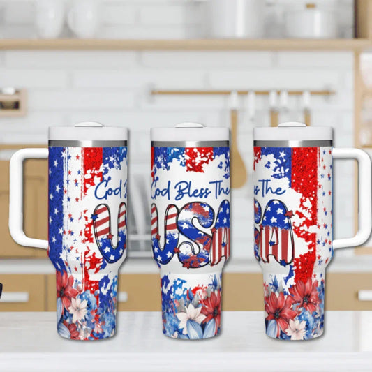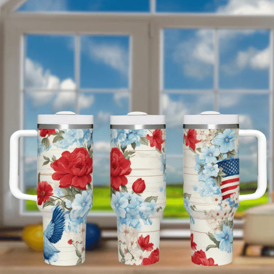 Patriotic Shabby Chic Flowers with Flag 40 oz Tumbler