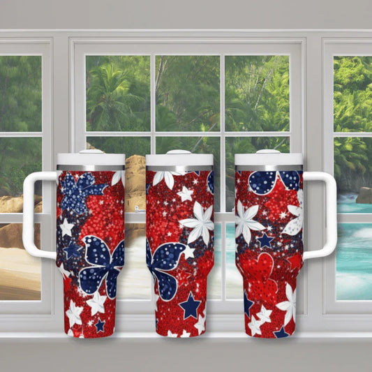 Sparkle Red White & Blue Stars with Daisies 40 oz Tumbler