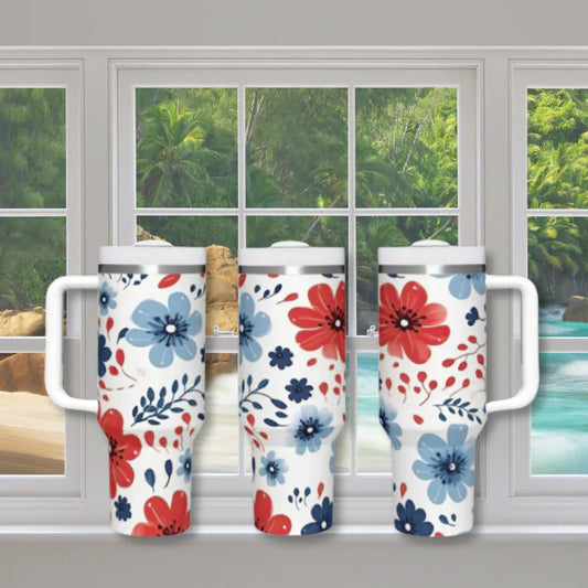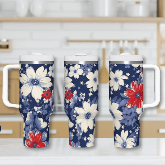 Vintage Red White & Blue Floral 40 oz Tumbler