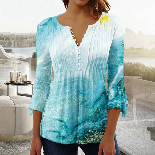 Printed Long Sleeve Blouse – Elegant Loose Fit Women’s Shirt