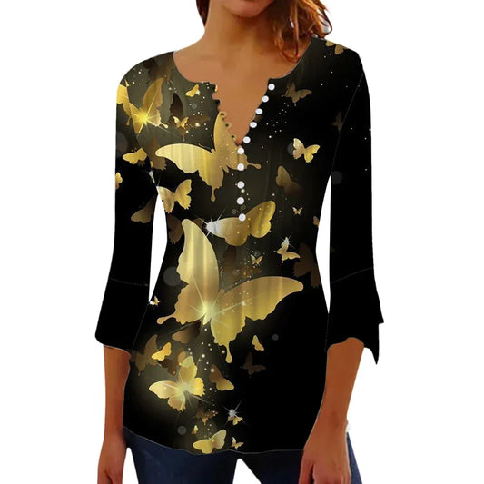 Women’s Casual Butterfly Print Shirt – Short Sleeve Pullover