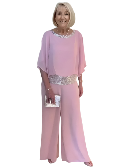 Elegant Women's Chiffon Sequin Summer Two Piece Set