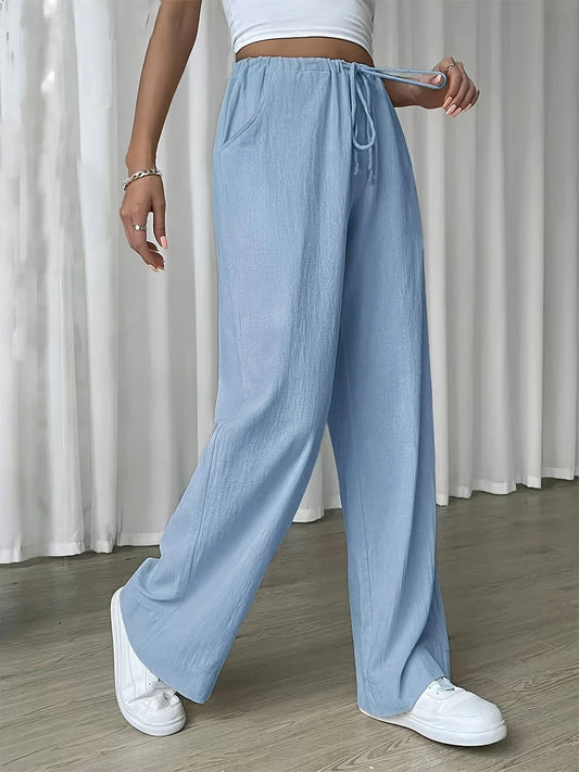 Women's Relaxed Wide Leg, Tie Waist Pants | Polyester Cotton Linen