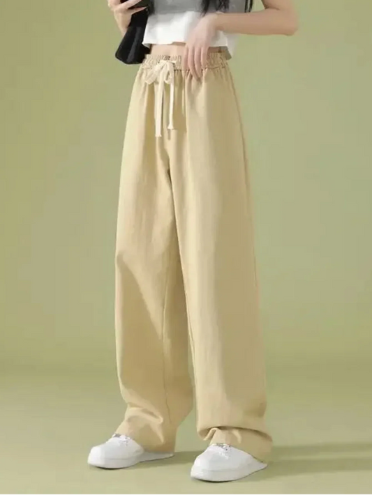 Women's Wide Leg Nylon-Cotton Casual Style Pants Regular Fit Solid
