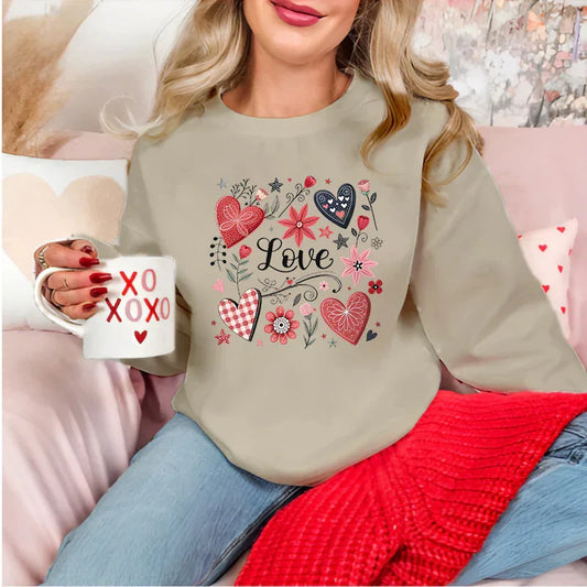 Retro LOVE Hearts And Flower Boquete | Women Valentine Sweatshirt