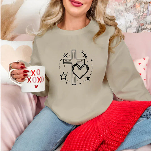 LOVED Cross Heart | Women Christian Valentine Sweatshirt