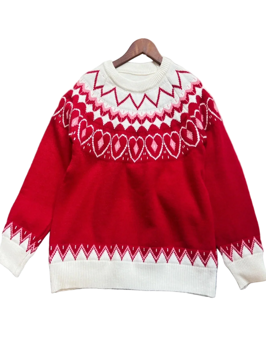 Valentine Red Pullover Knit Sweater With Heart Fair