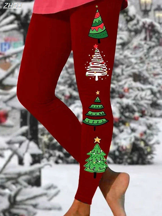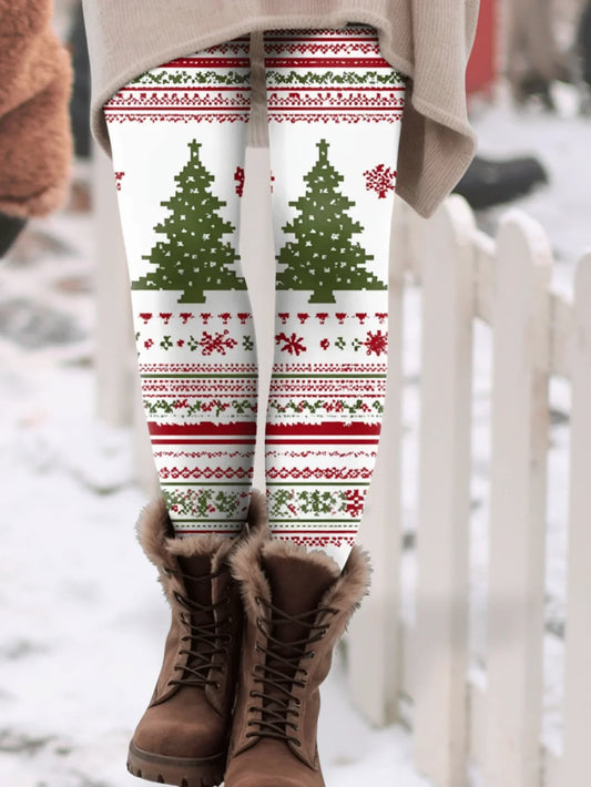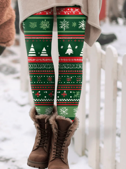 Christmas Snowflake Print Leggings Warm Soft Breathable