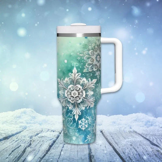 Teal Blue Silver Snowflakes | 40 oz Tumblers
