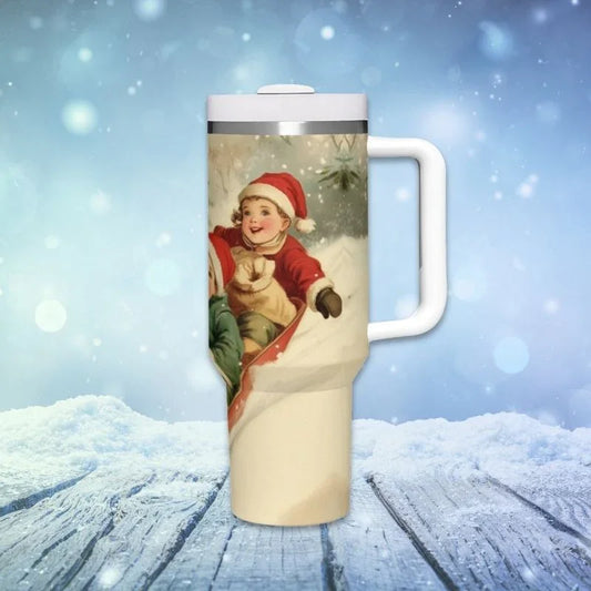 Vintage Snow Sledding Scene | 40 oz Tumbler