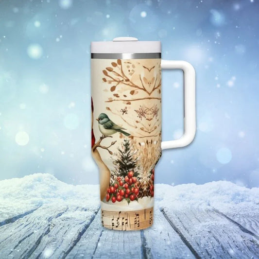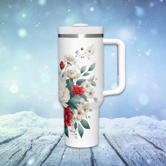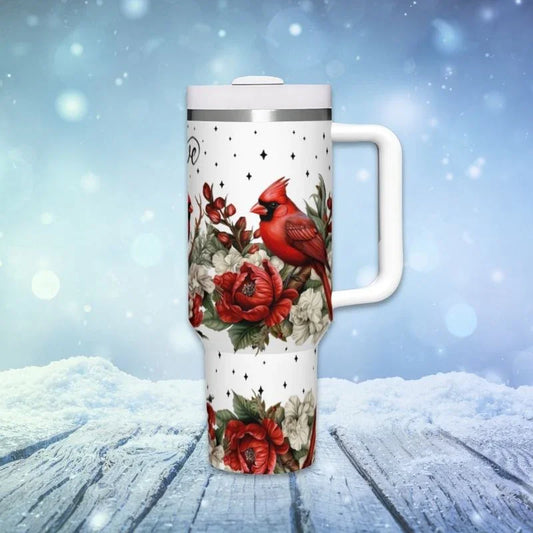 Red Cardinal with White Flowers | 40 oz Tumbler