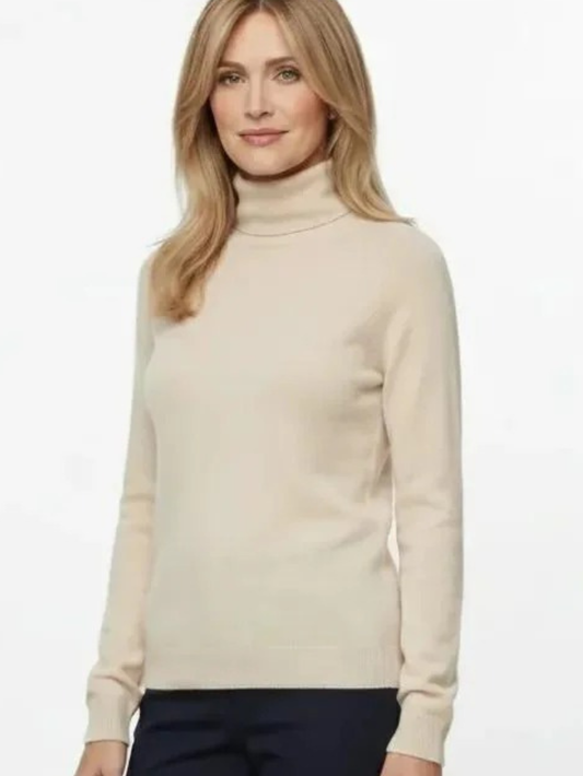 Beige Merino Wool Long Sleeve Turtleneck Sweater
