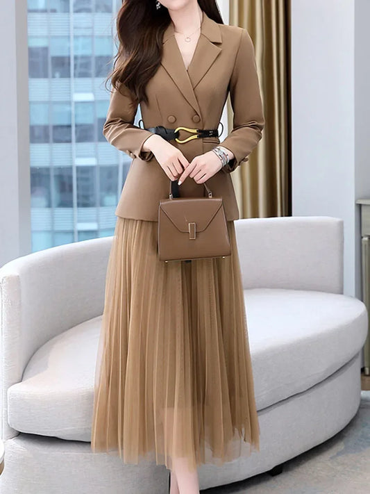 Elegant Two Piece Blazer Set For Women Office Spring Orange