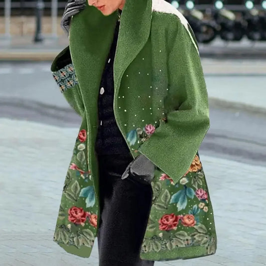 Warm Mid Length Floral Print Coat With Turn Down Collar | Plus Size