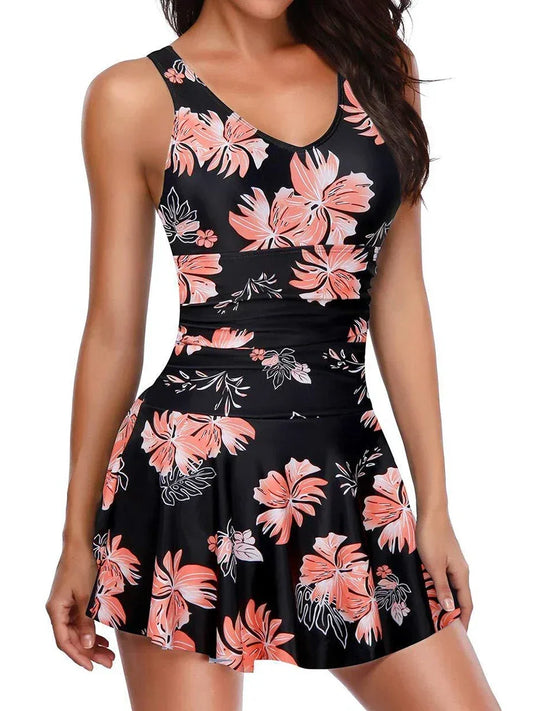 Retro Print Tankini – Loose Fit Summer Swimsuit for Women