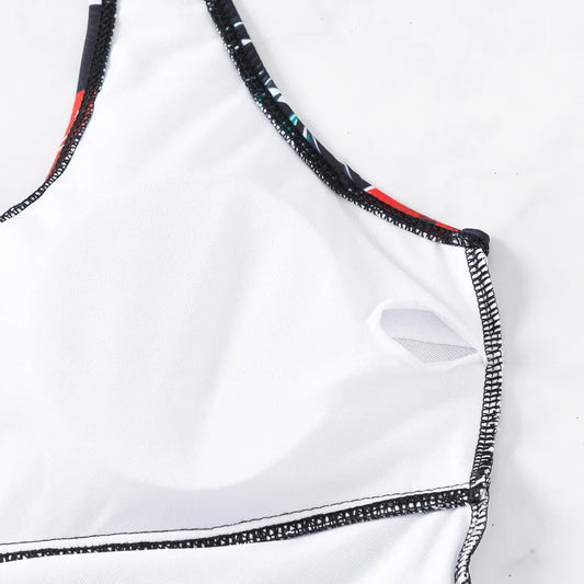 Contrast One-Piece Swimsuit – Push-Up Bathing Suit with Suspender Straps
