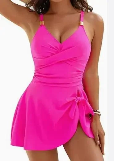 Plus Size Pink Floral Padded Swimsuit Swimdress