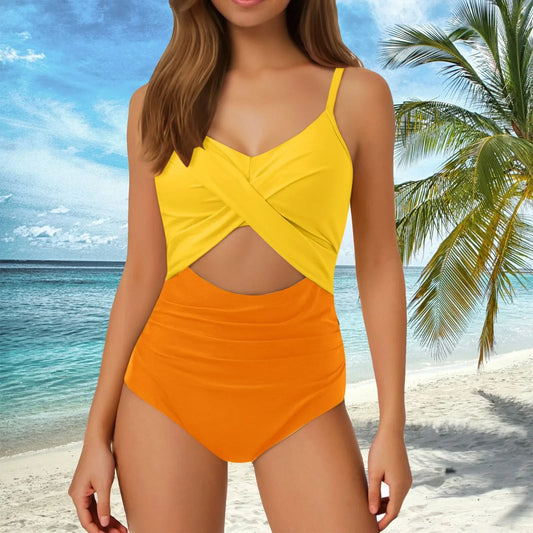 Backless One-Piece Swimsuit – Hollow Out Colorblock Bathing Suit